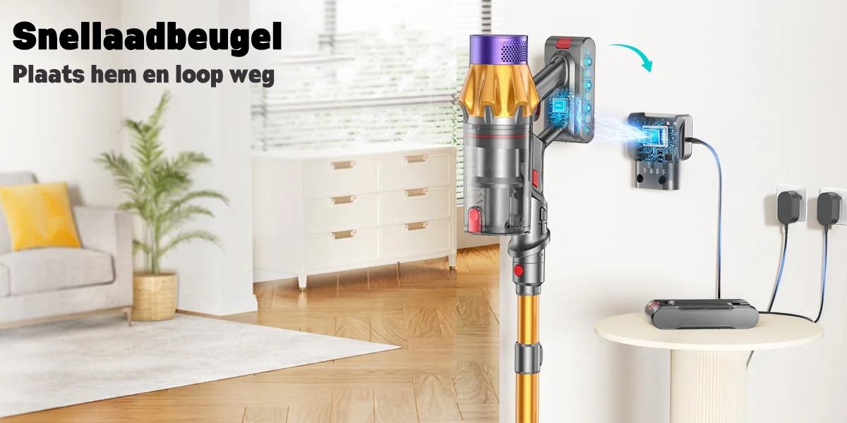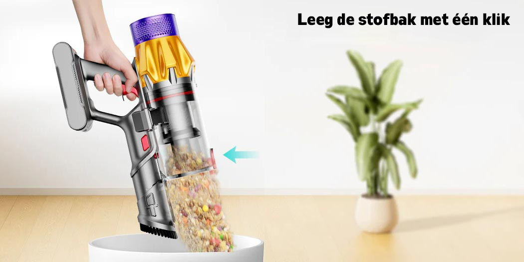 De draadloze stofzuiger maakt het mogelijk om elke hoek van je huis schoon te maken, inclusief moeilijk bereikbare plekken.