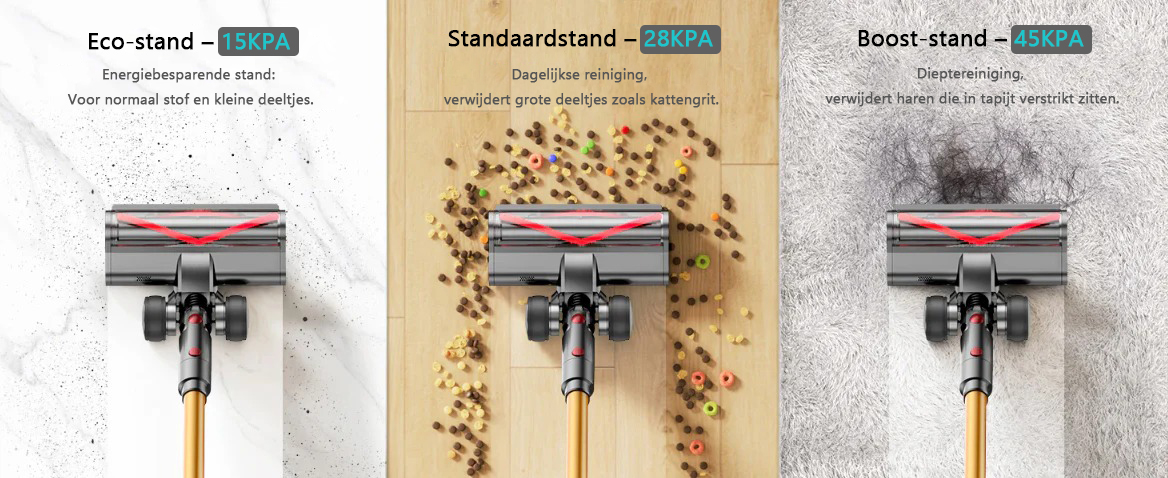 Krachtige reiniging met 45 KPA zuigkracht